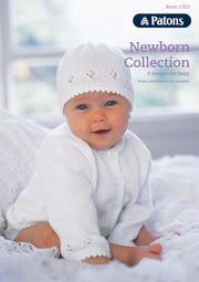 Patons Newborn Collection 1303 has a beautiful collection from newborns to 12 months. The 8 designs in 3 ply, 4 ply and 8 ply feature shawls, jackets, jumper, hats and socks. A lovely collection suitable for both boys and girls. Great addition to your newborns wardrobe.