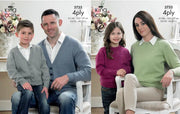 King Cole pattern 3755 features jumpers and v neck cardigans for the whole family knitted in 4 ply.